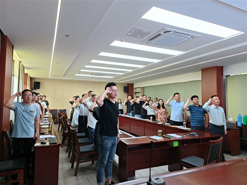 會上,全體黨員在莊嚴的黨旗下重溫入黨誓詞,“我志愿加入中國共產(chǎn)黨,擁護黨的綱領(lǐng)……”鏗鏘的誓詞,回蕩在會議室的每個角落,銘刻在每一個人的心頭。重溫入黨誓詞后,集團公司黨支部副書記徐蕾同志為上半年過“政治生日”的黨員發(fā)放政治生日賀卡,黨員們也紛紛為過“政治生日”的黨員送上祝福。