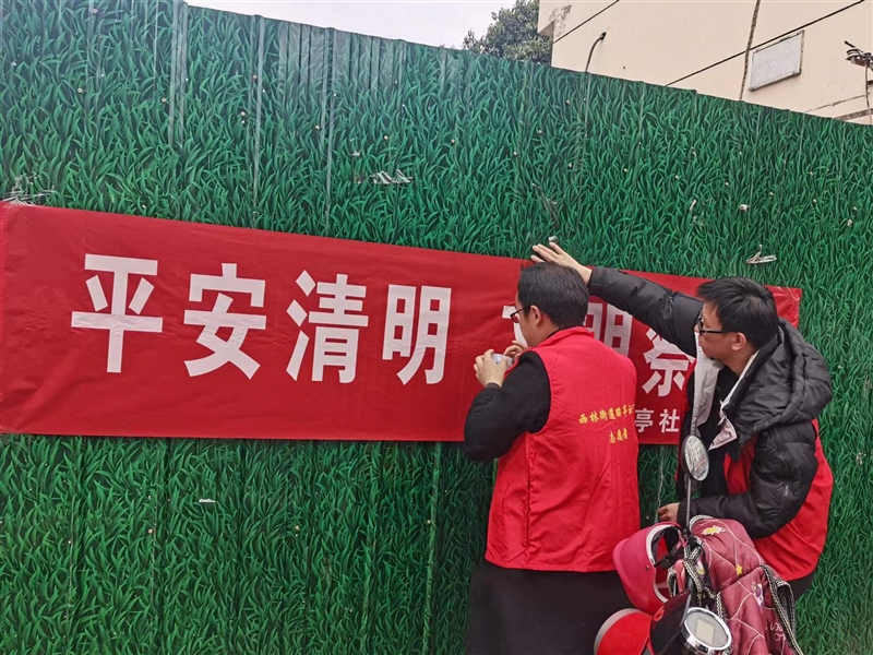 活動中,志愿者與社區(qū)工作人員向居民發(fā)放倡議書,呼吁社區(qū)居民進一步樹立“安全文明、綠色環(huán)保”清明祭祀新風尚,建議用鮮花祭祀、絲帶寄哀思、網(wǎng)絡(luò)祭掃等文明簡約、綠色環(huán)保的祭掃方式來寄托哀思,營造文明有序的祭祀環(huán)境。