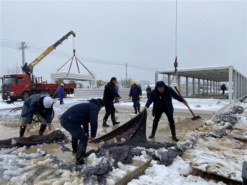 2月7日(農(nóng)歷正月初七),冬雪紛紛、寒風(fēng)瑟瑟,惡劣的天氣并未阻擋隔離點(diǎn)項(xiàng)目各參建單位的激情和干勁。中午12時(shí)40許,監(jiān)理單位在現(xiàn)場開展巡查,鰲峰建設(shè)在項(xiàng)目部組織施工會商工作。下午,國資集團(tuán)黨員突擊隊(duì)、志愿服務(wù)隊(duì)主動請“戰(zhàn)”,步履匆匆赴現(xiàn)場鏟雪除冰。副區(qū)長王劍赴現(xiàn)場督查指導(dǎo)工作并對項(xiàng)目進(jìn)度表示肯定。