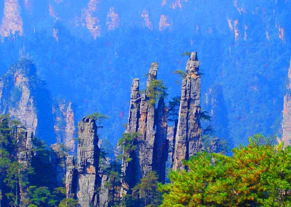 上 午: 導(dǎo)游或者司機(jī)在張家界機(jī)場(chǎng)或車站或者酒店接團(tuán)。旅游車前往中國(guó)第一個(gè)國(guó)家級(jí)森林公園——【張家界國(guó)家森林公園】(約40分鐘車程,門票245元+5元景區(qū)保險(xiǎn)已含)。游覽大氧吧廣場(chǎng)(每立方厘米空氣中含8-10萬(wàn)個(gè)負(fù)氧離子),登海拔1200米、張家界最大的凌空觀景臺(tái)——【黃石寨景區(qū)】(黃石寨可以乘索道上下,也可以徒步上下。如果選擇乘坐索道,單程65元/人、雙程118元/人自行購(gòu)買)。黃石寨山頂千山萬(wàn)壑盡收眼底,沿著山頂環(huán)寨游道行走,可欣賞到許多絕美的自然風(fēng)光,沿途有六奇閣、摘星臺(tái)、雙門迎賓、五指峰、霧海金龜、天然壁畫、黃石松、回音壁、九重壁等景點(diǎn);