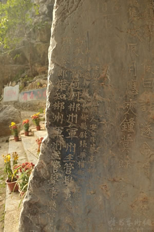 萬(wàn)華巖摩崖石刻群 位于郴州市北湖區(qū)萬(wàn)華巖鎮(zhèn)萬(wàn)華巖國(guó)家級(jí)風(fēng)景名勝區(qū)內(nèi)。萬(wàn)華巖洞內(nèi)留下了大量的宋代、清代石刻。其中立于清咸豐十年(1860)三月的《坦山萬(wàn)華巖敘》碑,高1.5米,寬1.0米,厚0.3米,碑文800字,楷書(shū),字跡清晰。記載了太平軍攻入郴州和退出郴州的時(shí)間、地點(diǎn)及當(dāng)年太平軍犯郴及當(dāng)?shù)匕傩盏挚沟那闆r。