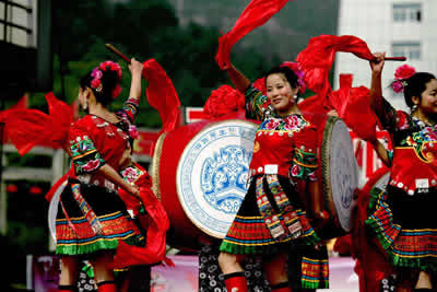 苗族花鼓源于唐代,至今已有一千多年的歷史。為什么叫花鼓?因無文字可考,據老年的花鼓師傅說,幼年他們跟上一輩人學鼓時,鼓上都貼有各種鮮艷的花瓣,擊鼓,不準擊落花瓣,這便要上乘的功夫。也許這就是花鼓的由來。