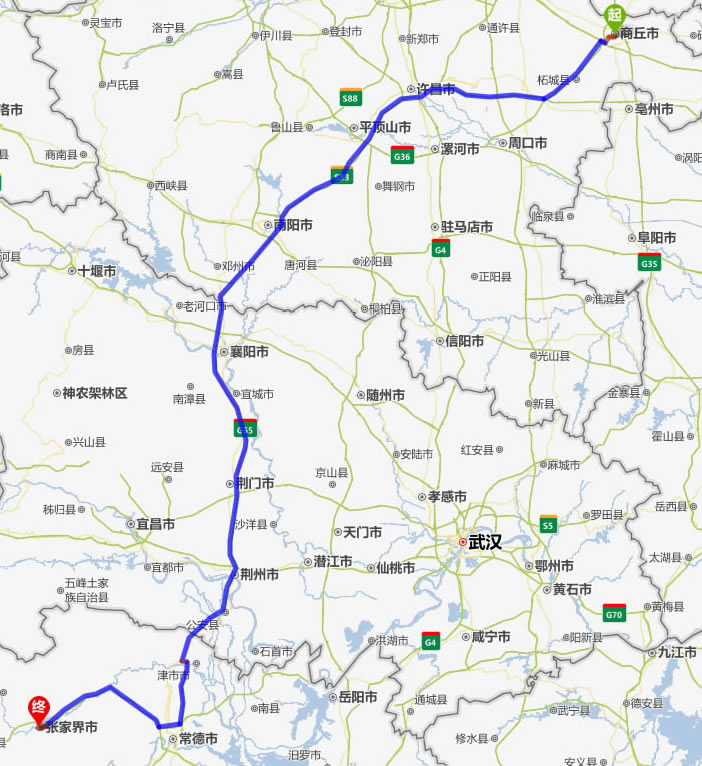 商丘去張家界自駕車(chē)自助游線(xiàn)路圖全程高速):