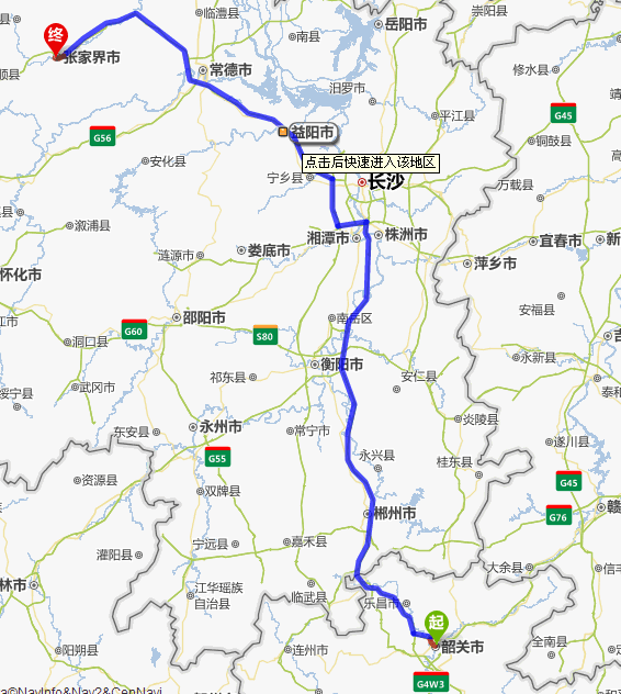 韶關(guān)去張家界自駕車(chē)自助游線路圖全程高速):