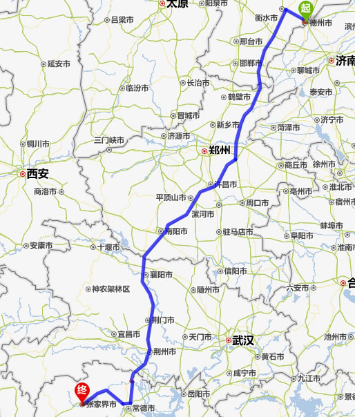 德州去張家界自駕車(chē)自助游線路圖全程高速):