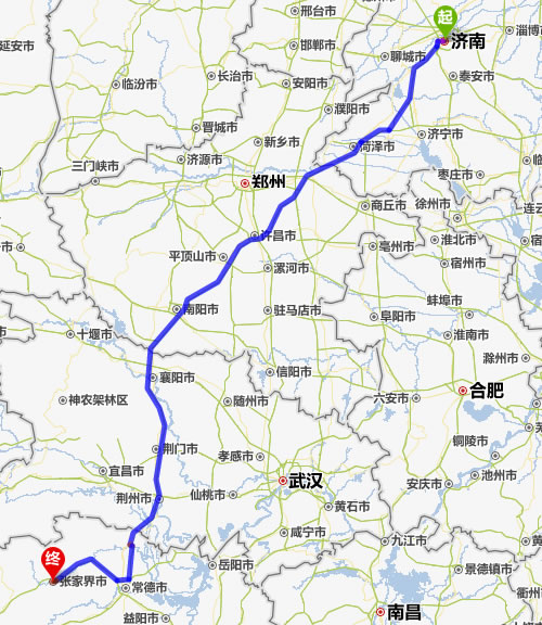 濟(jì)南去張家界自駕車(chē)自助游線路圖全程高速):