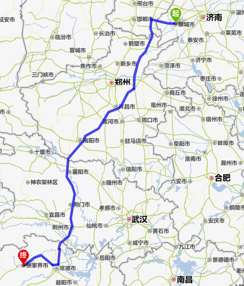 聊城去張家界自駕車自助游線路圖全程高速):