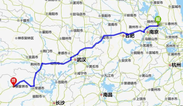 揚州去張家界自駕車自助游線路圖全程高速):
