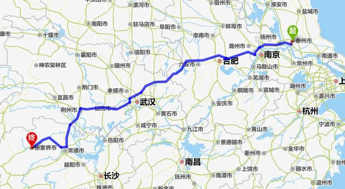 泰州去張家界自駕車(chē)自助游線(xiàn)路圖全程高速):