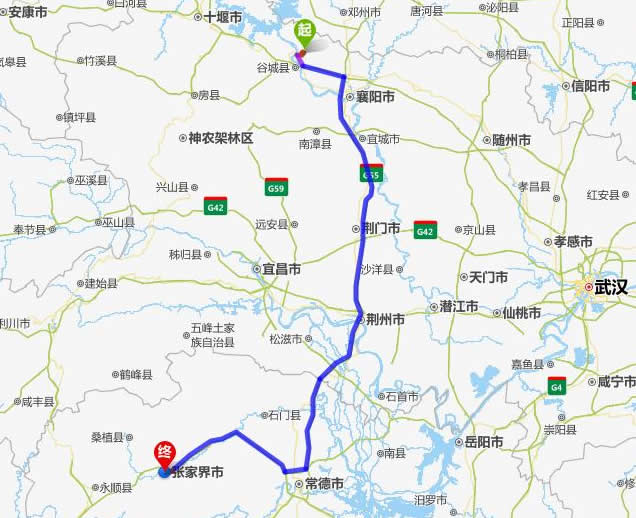 老河口去張家界自駕車自助游線路圖全程高速):