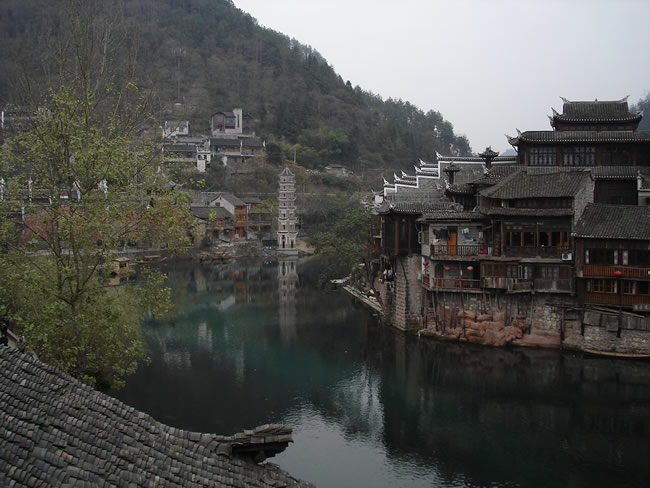 【鳳凰古城位于沱江之畔、群山環(huán)抱、關(guān)隘雄奇、碧綠的沱江依著城墻緩緩流淌,疊翠的南華山麓倒映江中,江中漁舟游船數(shù)點(diǎn),山間暮鼓晨鐘兼鳴,懸崖上的吊腳樓輕煙裊裊,碼頭邊的浣紗姑笑聲朗朗,兩岸已有數(shù)百年歷史的吊腳樓更是別有一番風(fēng)味;順?biāo)麓┻^(guò)虹橋一幅江南水鄉(xiāng)的畫(huà)面便展現(xiàn)于眼前--萬(wàn)壽宮、萬(wàn)名塔、奪翠樓……一種遠(yuǎn)離塵世的感覺(jué)悠然而生;鳳凰--猶如“一幅濃墨淺彩的中國(guó)山水畫(huà)”】,入住酒店。